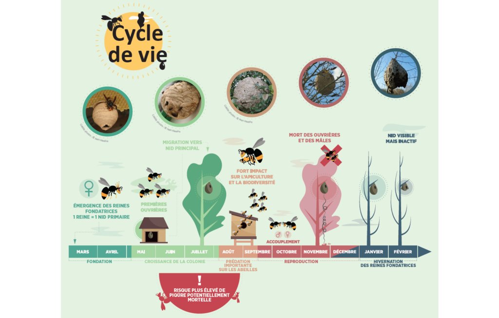 Les frelons asiatiques (Vespa velutina) construisent deux types de nids au cours de leur cycle de vie.